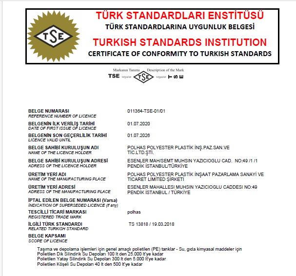 The raw materials we use in production are approved by the Ministry of Health and TSE and are certified with a TSE quality certificate.